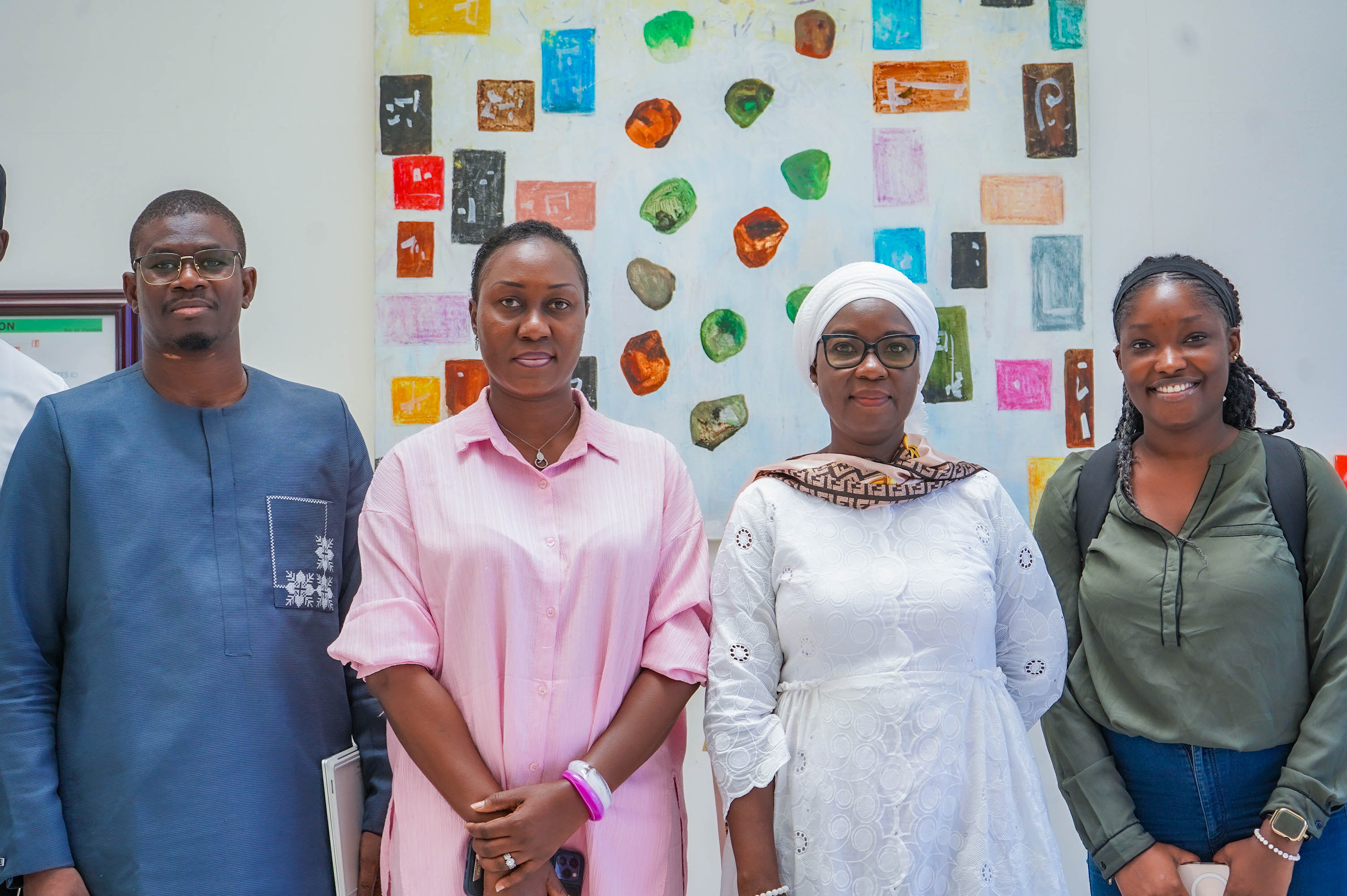 La rencontre a réuni, aux côtés de la Vice-Rectrice, M. Abibou DIOP, Responsable du Service informatique et des systèmes d’information, M. Baye Mbaye BITEYE, du même service, ainsi que M. Papa Demba FAYE, agent à la Direction de la Communication et du Marketing (DIRCOM-UAM).